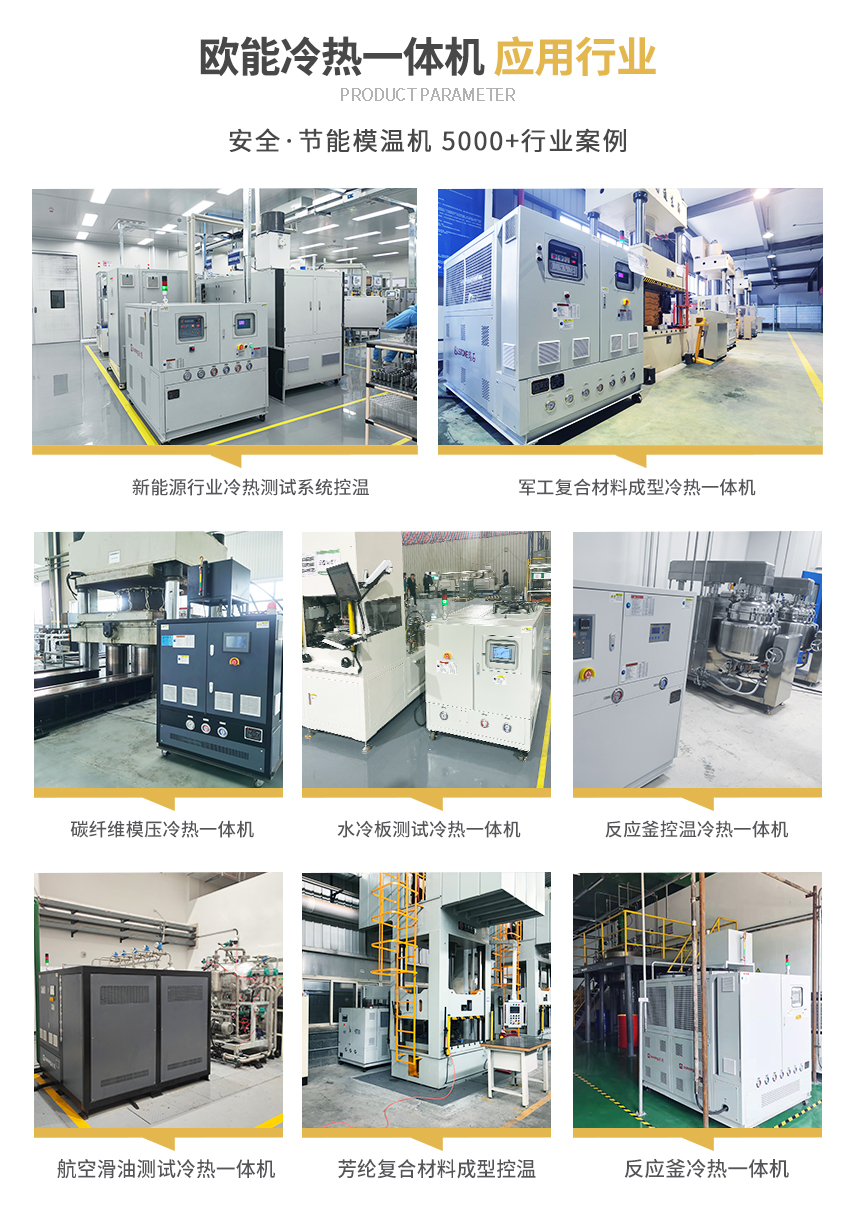 冷熱一體機(jī)組包括加熱和冷卻部分,控溫溫度精準(zhǔn),可實(shí)現(xiàn)冷熱相互切換加快生產(chǎn)進(jìn)度降低能耗,提高產(chǎn)品的成型效率,抑制產(chǎn)品的缺陷,降低不良產(chǎn)品的產(chǎn)生。冷熱一體機(jī)組采用電腦觸摸式控制,自動(dòng)精確控溫,可快速達(dá)到設(shè)定溫度。安全保護(hù)系統(tǒng)完善、省電、耐用,適合不同溫控場(chǎng)所使用。實(shí)現(xiàn)一機(jī)兩用。